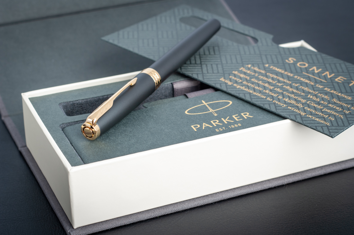 Перьевая ручка Parker Sonnet Matte Black GT от официального дилера Parker в Иваново. Вы можете дополнительно заказать гравировку, которая подчеркнет Вашу оригинальность и придаст памятность статусному подарку. Все ручки Паркер поставляются в фирменном футляре.